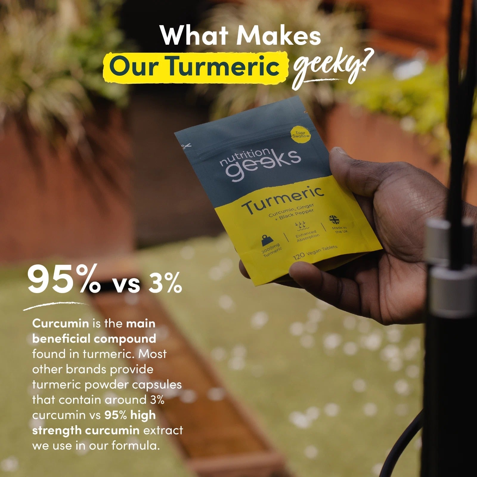 - 🧐 WHY BUY OUR HIGH STRENGTH CURCUMIN TURMERIC SUPPLEMENT TABLETS? Curcumin is the main beneficial active compound in turmeric. Most of our competitors provide turmeric powder capsules that only contain around 3% curcumin vs our 95% high strength extract. Each daily serving (2 tablets) has been formulated to provide the equivalent of 2000mg of the highest quality turmeric (35:1 Extract), 1000mg (23:1 Extract) of Ginger and 200mg (10:1 Extract) of black pepper (piperine).